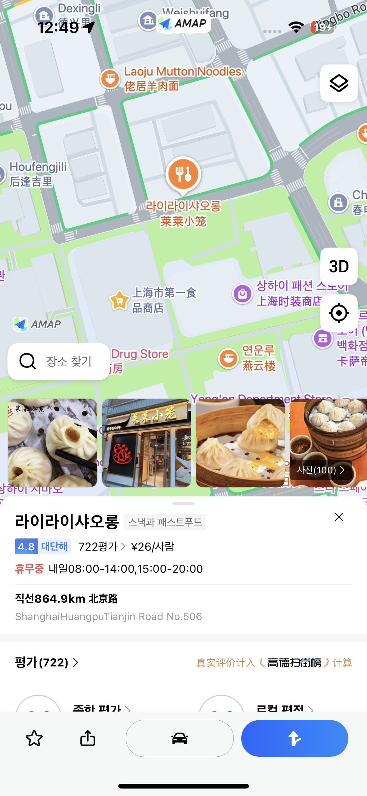 이튿날, 너무 피곤해서 암막커튼을 안치고 잤더니 새벽 6시에 기상해 버렸다. 아침부터 배가 고파서 분주하게 아침식사 할 곳을 찾았다. 역시나 디안핑에서 찾았는데 일단 너무 배고파서 근처에 가야 했다. 엄마가 더 자면 나 혼자라도 다녀올 생각이었을 정도로 배고팠다. 그리고 어제 먹은 만두집이 너무 별로라서 별점 높은 곳을 가려고 찾았다. 그렇게 찾은 곳이 라이라이샤오룽.